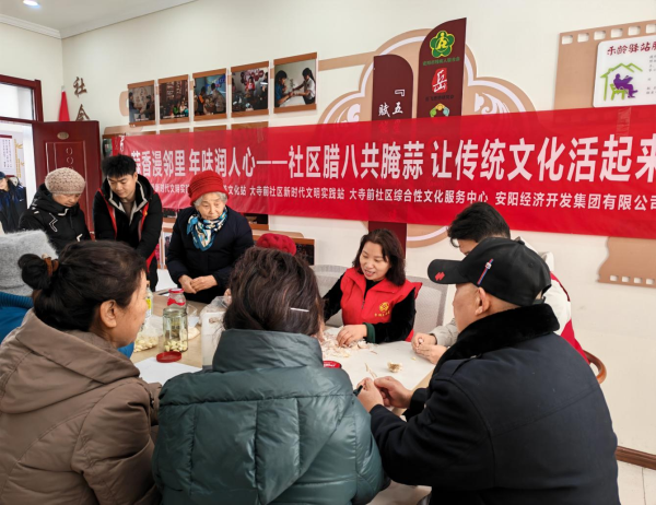 農(nóng)歷臘月初八,歲寒情深,年味漸濃。為傳承中華優(yōu)秀傳統(tǒng)文化,傳遞社區(qū)關(guān)懷,增進(jìn)鄰里情誼,經(jīng)開集團(tuán)志愿者走進(jìn)大寺前社區(qū)新時代文明實踐站,參加了“蒜香漫鄰里 年味潤人心”主題活動。志愿者們以實際行動踐行“奉獻(xiàn)、友愛、互助、進(jìn)步”的志愿精神,為社區(qū)居民送上冬日溫暖,讓傳統(tǒng)節(jié)日煥發(fā)文明新光彩。